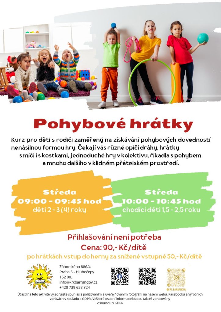Středa 10:00 – 10:45 hod – chodící děti 1,5 – 2,5 roku